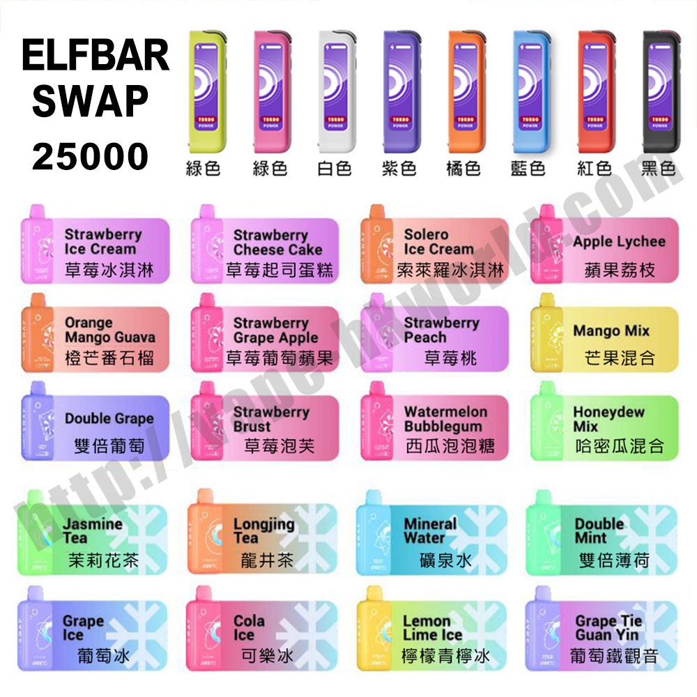 ELFBAR Swap 25000 Puffs 換彈式電子煙|5% 尼古丁 可充電煙彈 搭載 LED 螢幕(王嘉爾同款)